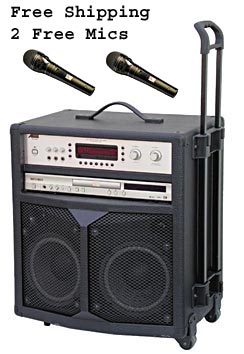 built-in DVD/CDG/MP3/CDR/CD-RW/VCD/SVCD/CD player, a 200 Watt karaoke mixing amplifier, a